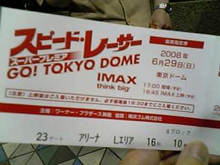 昨夜は、試写会仲間のYちゃんに誘われ、東京ドームへ 映画『スピードレーサー』のプレミア試写会に行ってきました!