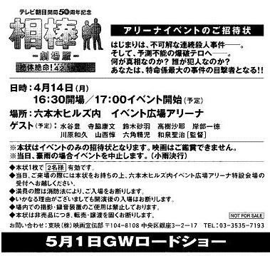 また、『この相棒劇場版を見て、また見たいと思ったら、DVD化を待たずに また劇場へ来て下さい。』ともおっしゃっていました。